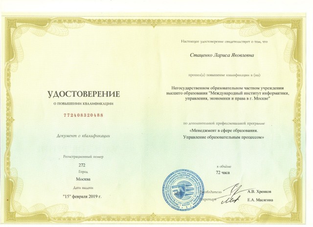 Стаценко Лариса Яковлевна,