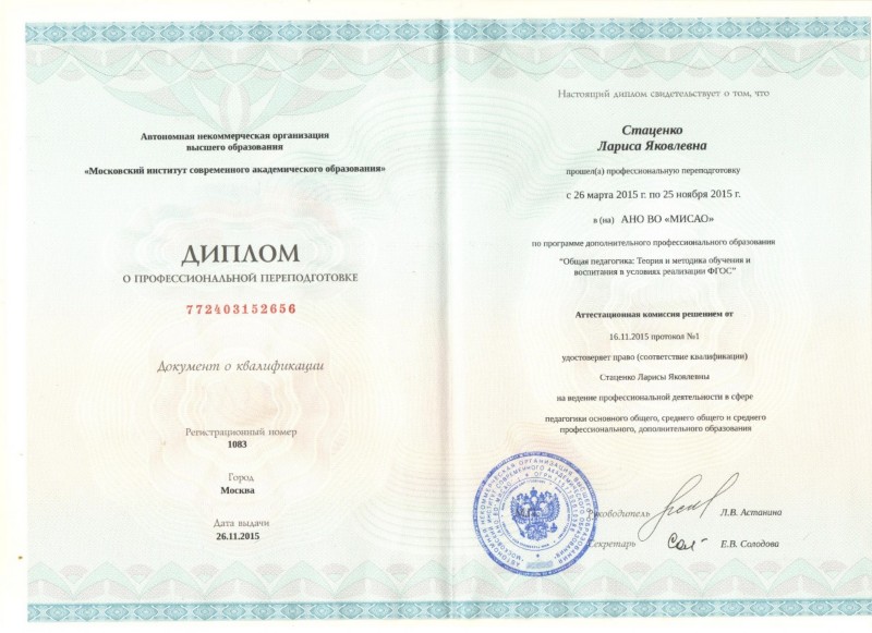Стаценко Лариса Яковлевна,